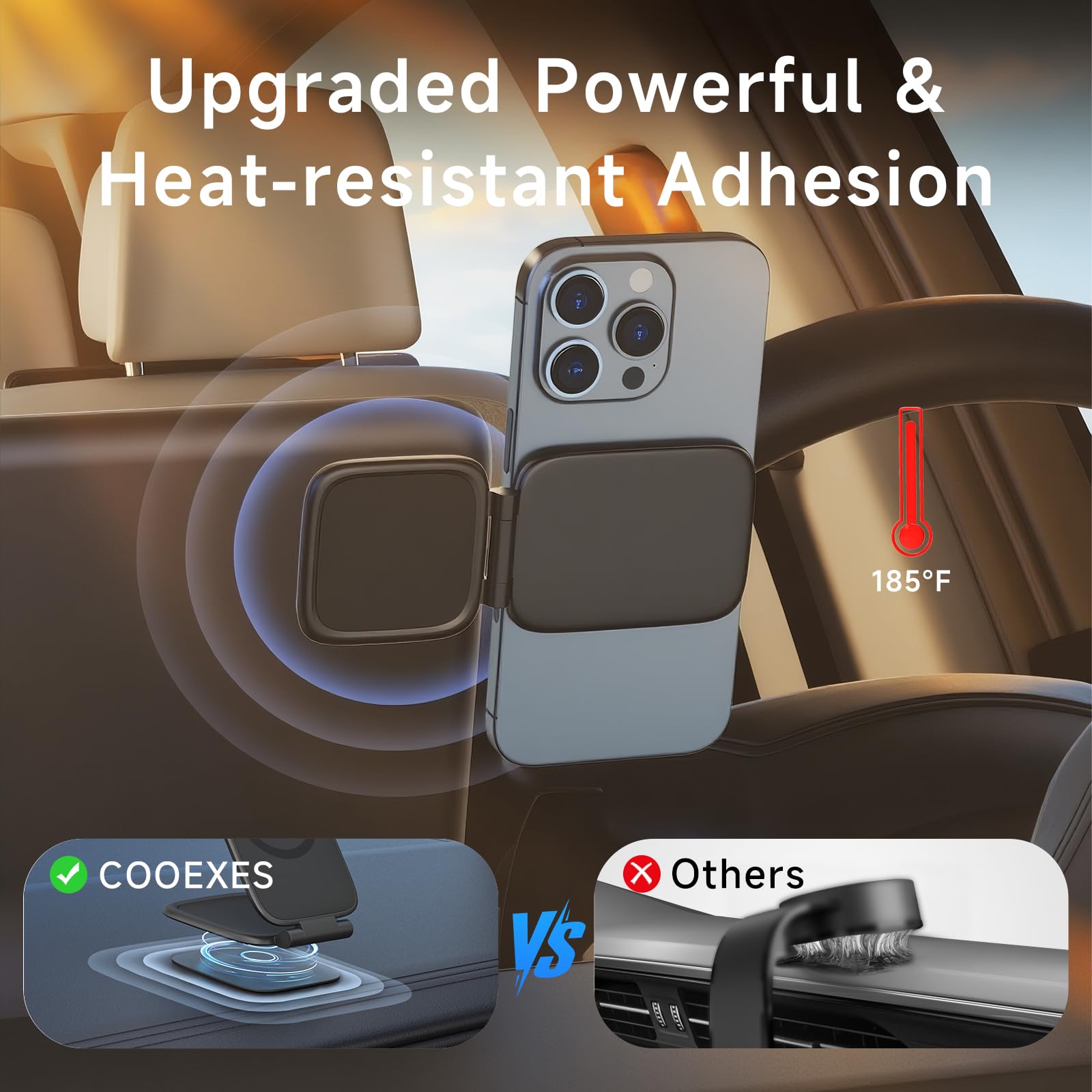 Ultra Strong Magnet:Our car mount uses 12 high-performance N52 magnets with a magnetic force of 1800gf, which can hold up 9 iPhone 17 Pro Max. The dual-sided magnet design allows you to choose to use it in conjunction with the included adhesive sheet, or simply stick it directly onto a metal surface.